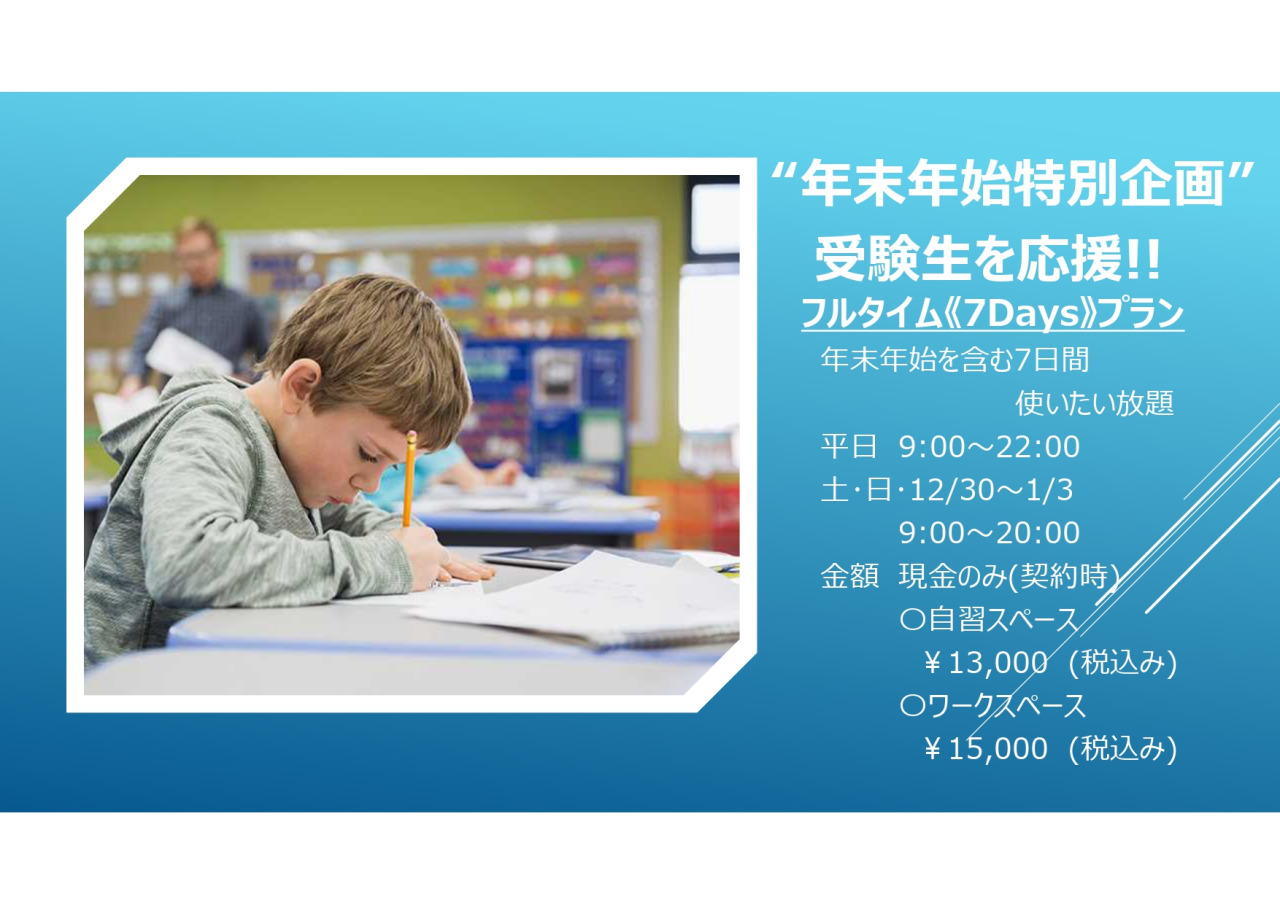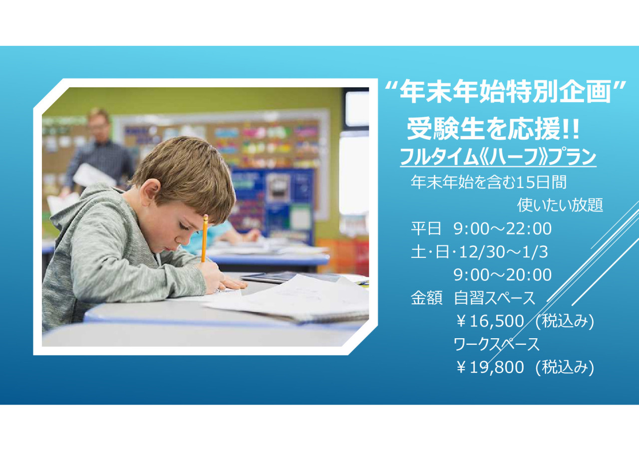 年末年始は、図書館や塾の自習室も使えないことが多いです。
